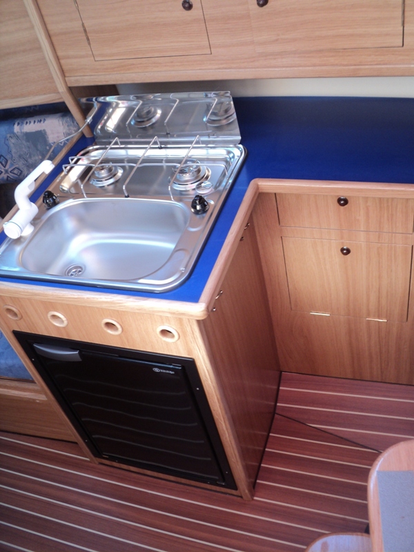 - kambuz: zlew, kuchenka dwupalnikowa, butla z gazem (2 lub 3 kg), zastawa stołowa, sztućce, garnki nierdzewne, patelnia, czajnik, deska do krojenia, durszlak,